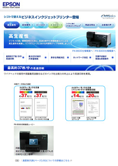 ■製品訴求用映像セイコーエプソン株式会社様が、設計・製造をし、エプソン販売株式会社様が、発売しているビジネスユースの高速顔料インクジェットプリンタに関します販売促進用映像です。 |
